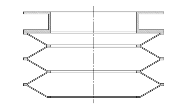 innoFlex® Scheibenbälge werden in der Regel aus CSM-Gummi, NBR-Gummi oder dem speziell entwickelten Material x-Tend gefertigt. Basis bilden einzelne ringförmige Scheiben, die abwechselnd an der Innen- und Außenkontur miteinander verbunden werden. So entsteht eine homogene Materialverbindung und ein geschlossener, beliebig langer Faltenbalg.