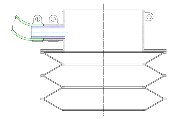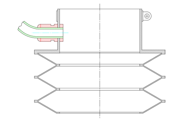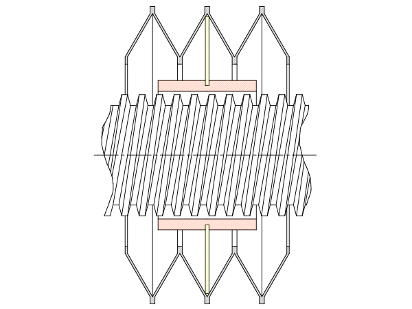 Im horizontalen Einbau können innoFlex®-Scheibenbälge mit Stützscheiben und/oder Gleitbuchsen ausgerüstet werden. Dadurch wird ein Verhaken des Balges mit einer Gewindespindel oder einer Zahnstange verhindert.