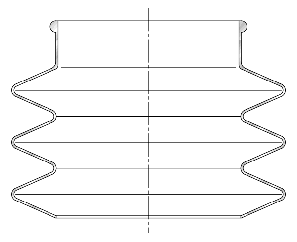Mit dem Tauchverfahren lassen sich selbst komplizierte Geometrien präzise realisieren – in Längen von 10 bis 800 mm. Auch für „klassische“ Faltenbälge in kleiner bis mittlerer Losgröße (50 – 1.500 Stück) bietet das Verfahren eine besonders kostengünstige Alternative, sofern das Material geeignet ist.