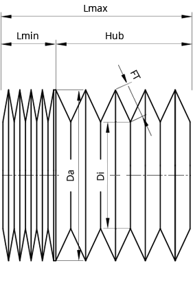 Zur Berechnung wählen Sie den Innen-(DI) und Außendurchmesser (Da). Nach Eingabe von Lmax oder dem Hub werden die ergänzenden Werte berechnet und angezeigt Anschließend wählen Sie bitte Ihre Anschlussmaße.